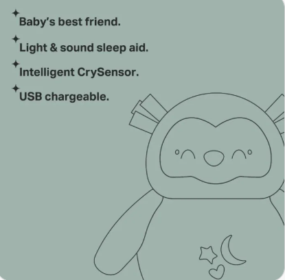 Helping your baby learn how to fall asleep and resettle after waking is the foundation of a lifetime of restful sleep. With a soft-glow nightlight, intelligent CrySensor and soothing sounds and lullabies, this cute and cuddly night-time companion will help you and your baby to get a good night’s sleep. Ollie’s plush fur is super soft for little fingers to touch and explore, and as he’s machine-washable, he will always be in a clean cuddle condition. His sleepy moon shaped eyes and soft, squishy tummy with star, heart and moon design make him a best friend that baby will forever love to the moon and stars. Ollie has a sound for every baby with 3 natural sounds including white noise, rainfall, and a heartbeat, 3 classic lullabies with adjustable volume and 3 light levels to choose from.